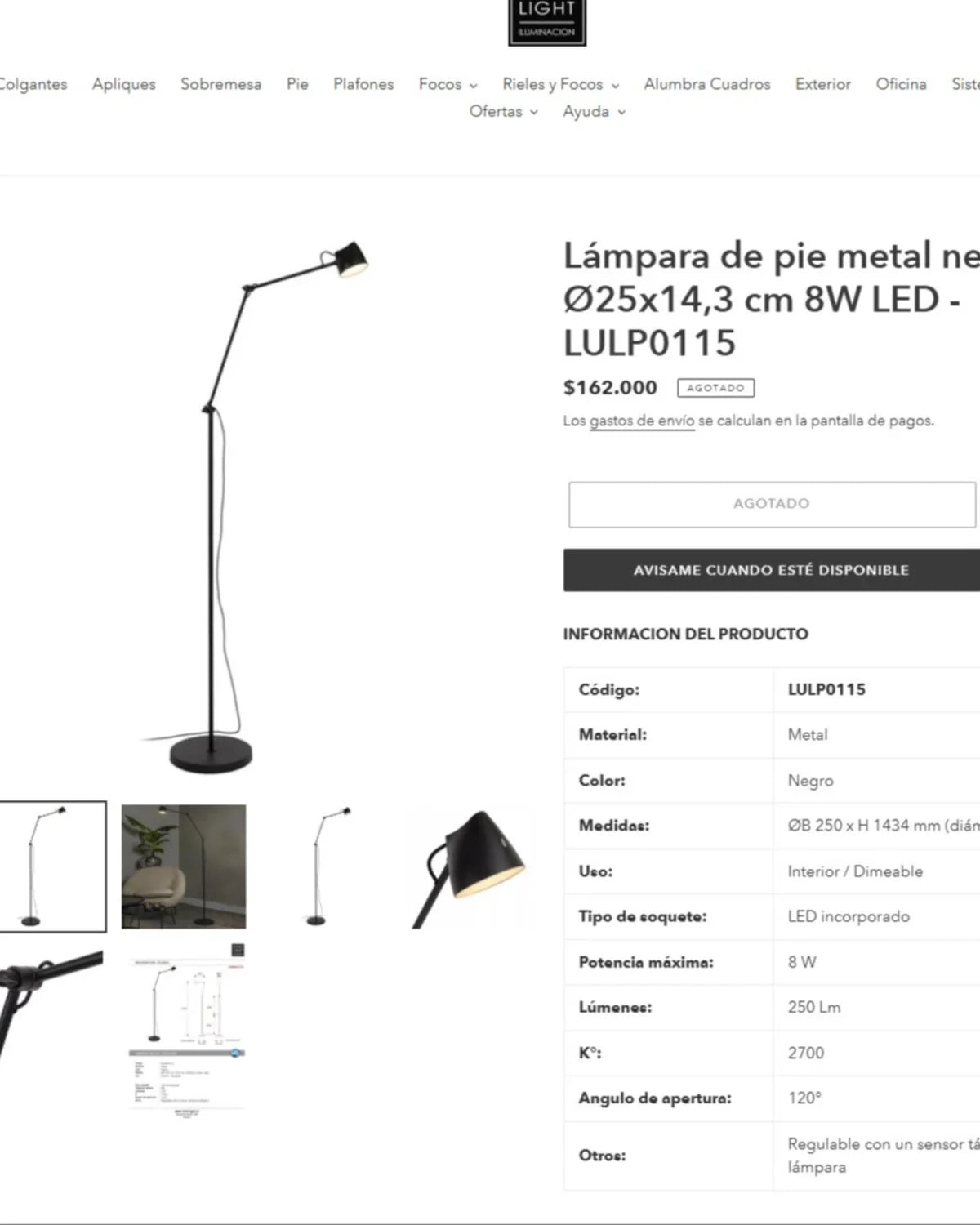 Lampara de pie ¡Ilumina tu espacio con estilo! Comparte WhatsApp Tweet Messenger Correo electrónico Venta -54% Interlight Lampara de pie ¡Ilumina tu espacio con estilo! Comparte WhatsApp Tweet Messenger Correo electrónico Forma del producto Agregar a Lista Agregar a Lista Cargando tus listas... Crear Nueva Lista Información del Producto: Marca: Interlight Vendedor: Cargando... Validación Identidad Requerida: Sí Estado: COMO_NUEVO Razón Venta: YA_NO_LO_USO Retiro: Vitacura Despacho Disponible: No Pago Tarjeta: Sí 1 en stock $162.000 $75.000 IVA incluido Quantity Añadir a mi carrito El vendedor ha decidido que esta venta es solo para compradores validados (KYC). Por favor, inicia sesión para poder validar tu identidad. Hacer una oferta Hacer una oferta × Para hacer una oferta, por favor inicia sesión o crea una cuenta.