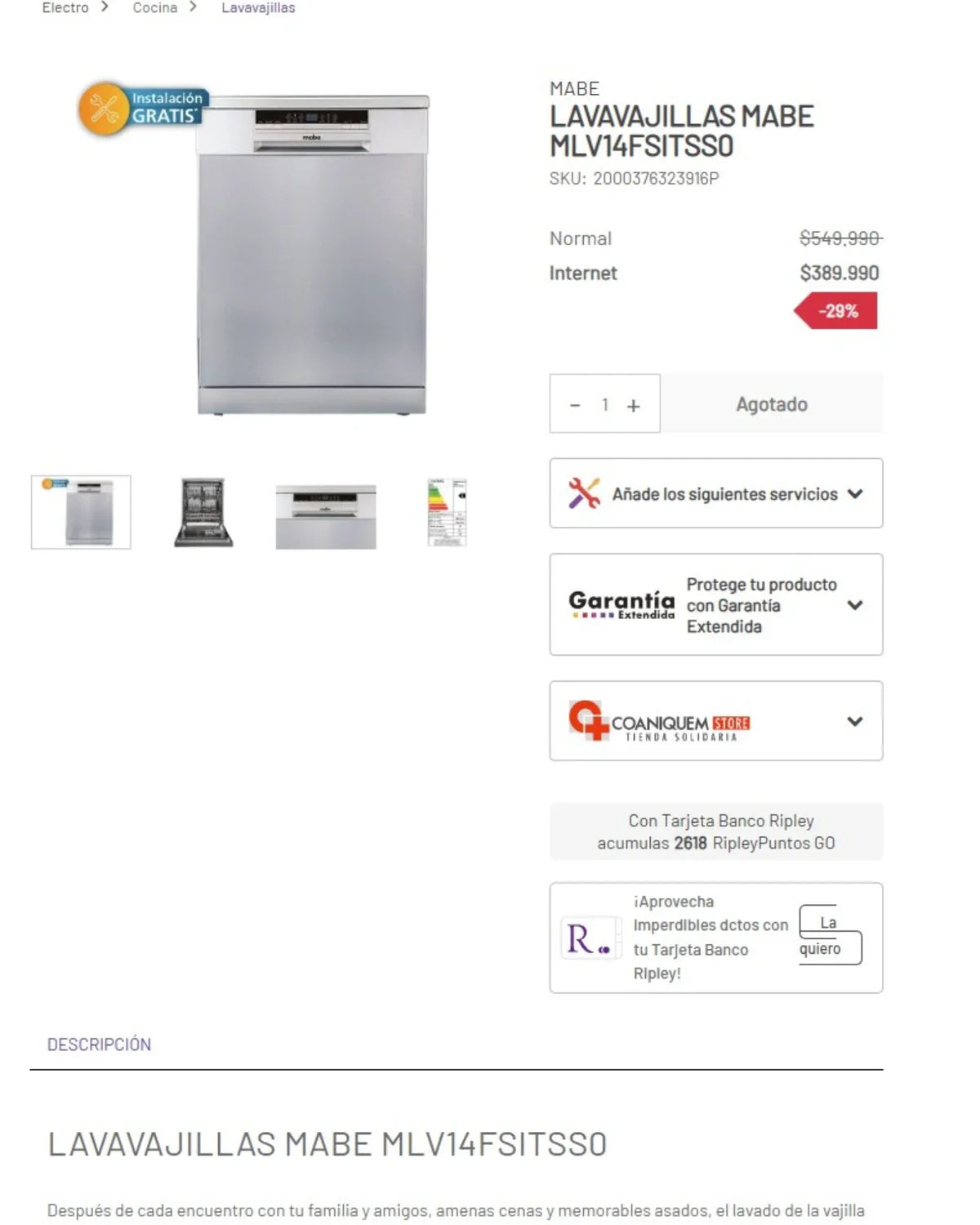¿Buscas un lavavajillas eficiente y moderno? Este es tu día de suerte. Estamos vendiendo un lavavajillas Mabe modelo MLV14FSITSS0 debido a una renovación en casa. ¡Está prácticamente nuevo y listo para hacer tu vida más fácil! 🔹 **Categoría:** Lavavajillas 🔹 **Marca:** Mabe 🔹 **Estado:** Como nuevo 🔹 **Comuna de retiro:** Las Condes 🔹 **Acepta pago con tarjeta:** Sí 🔹 **Acepta ofertas:** ¡Claro que sí! Este lavavajillas Mabe es conocido por su gran capacidad y eficiencia, ideal para familias o quienes disfrutan de cocinar sin preocuparse por la limpieza. Aprovecha esta oportunidad de adquirir un producto de calidad a un precio increíble. ¡Esperamos tu oferta! 😉