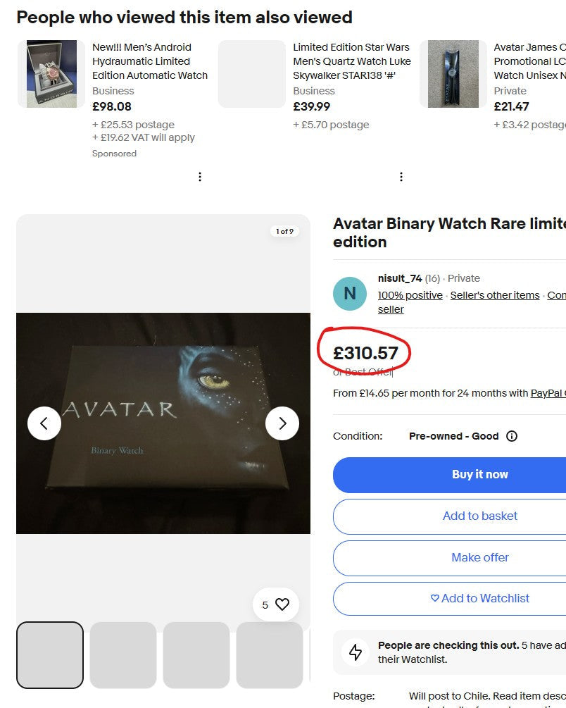 Reloj de colección Avatar - Binario 20th Century Fox Edición Limitada